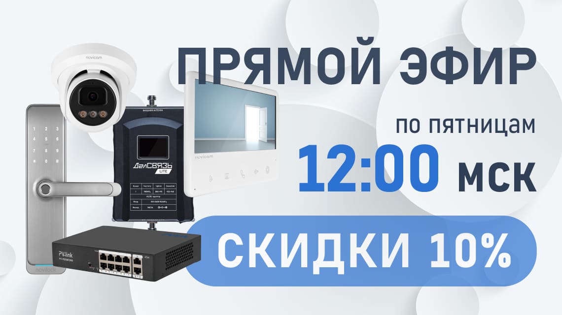 • розыгрыш «Товаров недели» — ведущий рандомно выберет 5 позиций из направлений Novicam, Novilock, PV-link и ДалСВЯЗЬ, на которые будет действовать скидка 10% всю неделю с 24 по 27 февраля 2026;